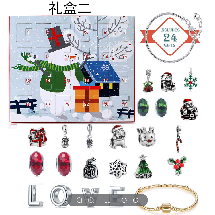 - 1 Weihnachts-Countdown-Kalender, 22 DIY-Charm-Perlen, 2 Armbänder.