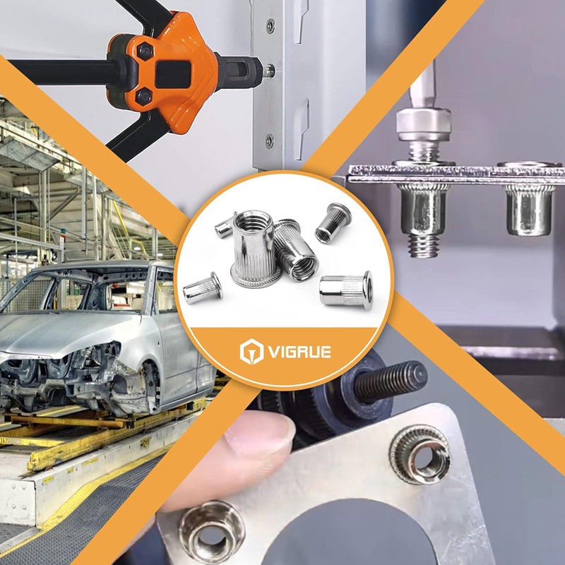 VIELSEITIGER EINSATZ - Diese Gewindemuttern sind ideal für verschiedene Anwendungen und bieten eine sichere und zuverlässige Befestigungslösung für Holz, Metall und Kunststoff. Egal, ob Sie an Möbeln, Automobilprojekten oder Handwerksarbeiten arbeiten, dieses Set passt sich Ihren unterschiedlichen Bedürfnissen an! Verwendungszwecke erforschen.