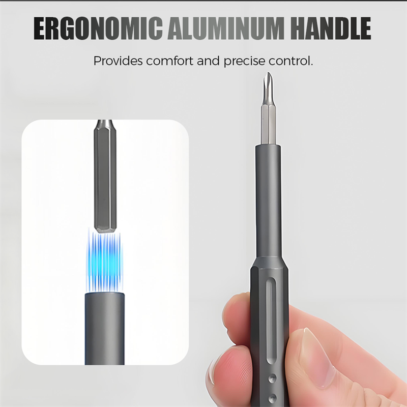 MAGNETIC QUICK-CHANGE SYSTEM - The handle and bits feature a strong magnetic connection, allowing for rapid, one-second bit swaps. This secure system also magnetizes the bit tip, making it easy to pick up and position tiny screws.